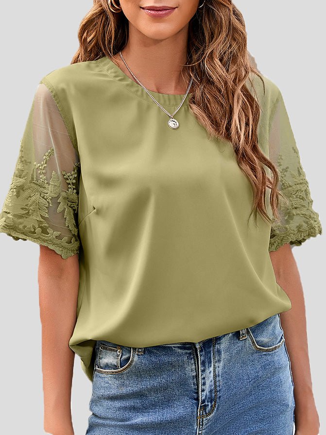 Women's T-Shirts Round Neck Lace Short Sleeve Chiffon T-Shirt
