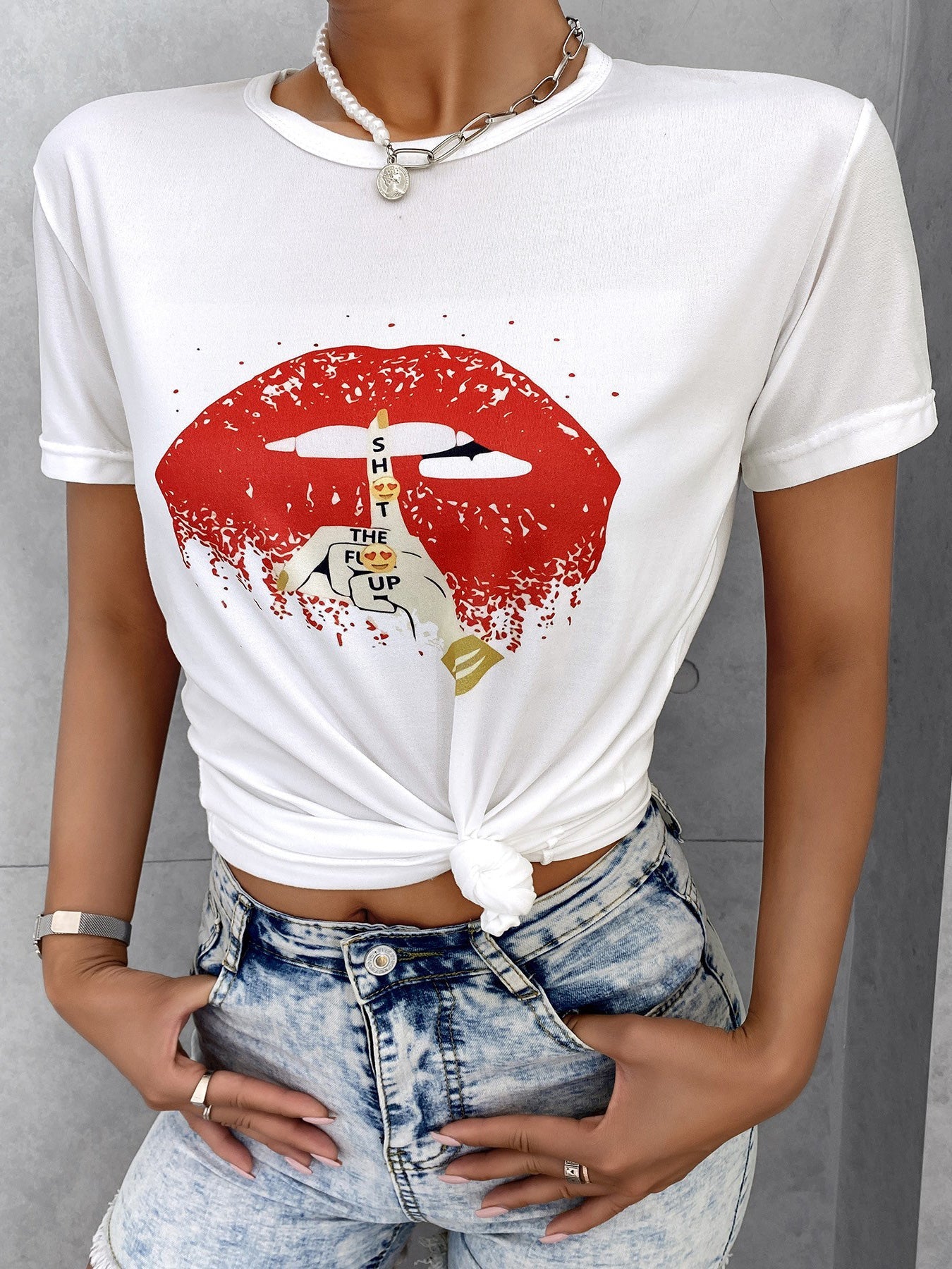 Women's T-Shirts Round Neck Lip Print Short Sleeve T-Shirt