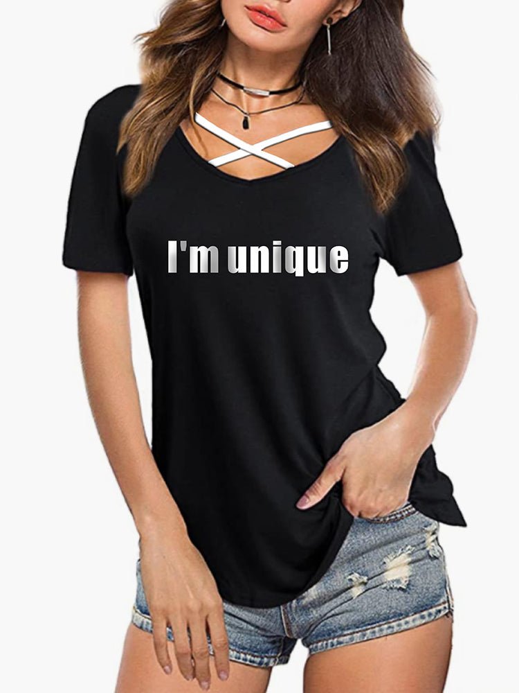 A top like the Short Sleeves Cross Strap Printed T-Shirt is just what you need to bring the whole wardrobe together! Lightweight woven fabric shapes this perfectly simple top that has a round neck with crossing straps and short sleeves.