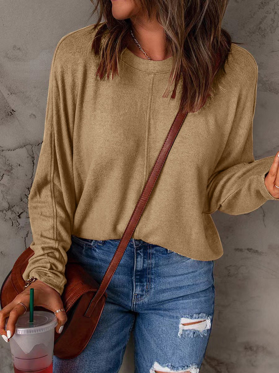 Drink your favorite coffee in INS Solid Crew Neck Long Sleeve Top! The soft and lightweight knit structure of this daily must-have top. with comfortable and fashionable loose fit. will become your new choice. Long sleeves and round neck design create a casual look. Pair with jeans and cute boots!