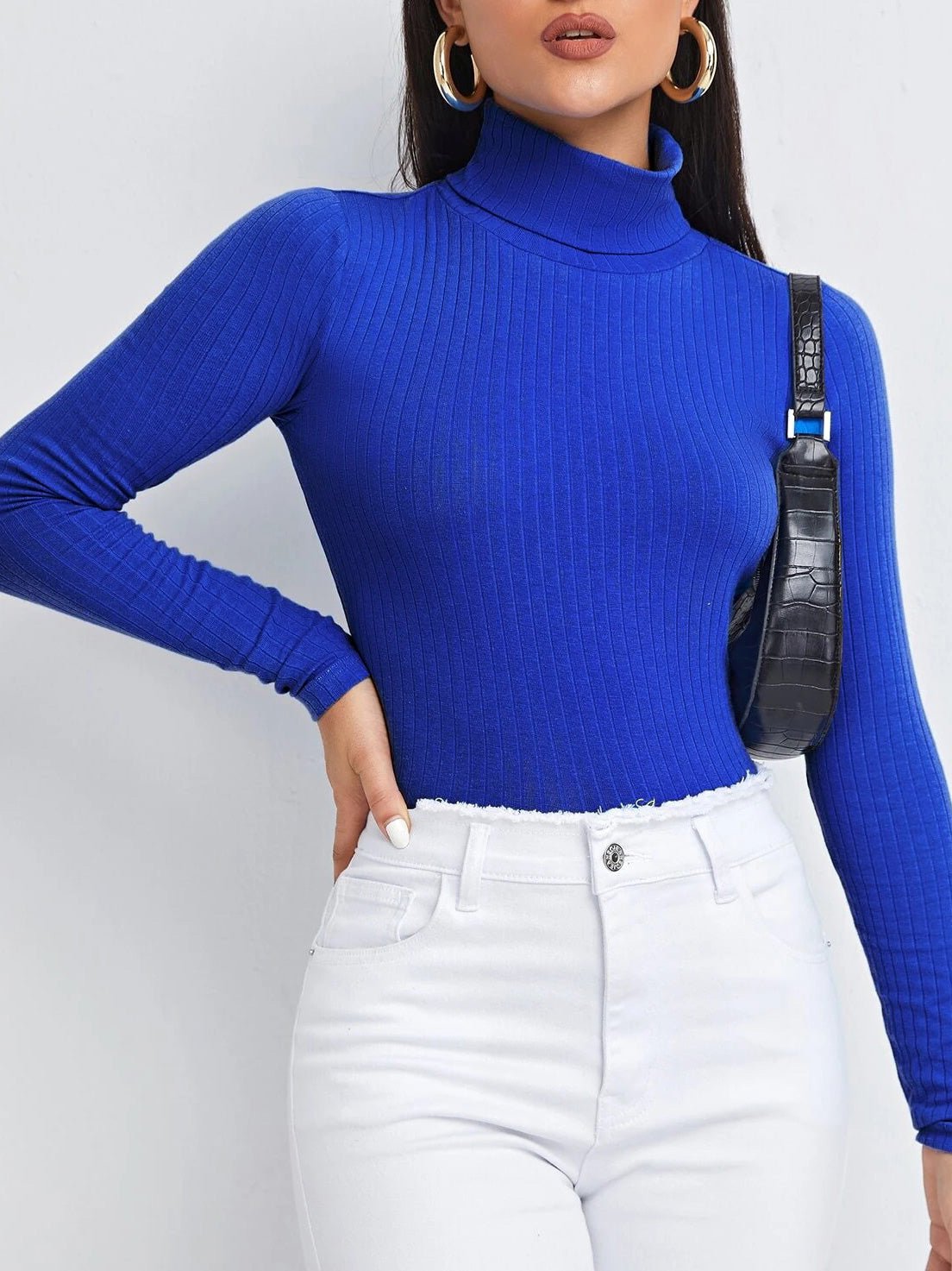 Feature: Solid. Turtleneck. Long Sleeve