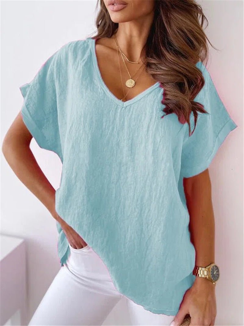 Women's T-Shirts Solid V-Neck Short Sleeve Casual T-Shirt