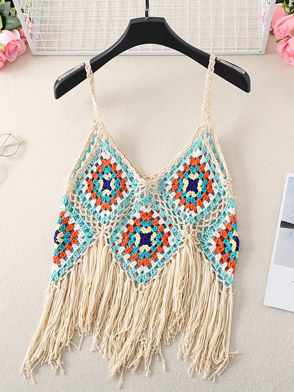 Women's Tank Tops Boho Fringed Suspender Cutout Knit Tank Top