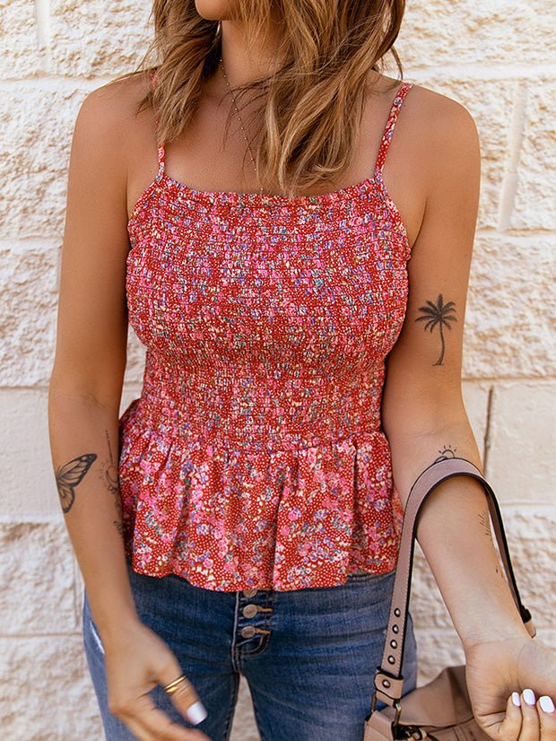 Women's Tank Tops Floral Suspender Smocked Ruffle Tank Top