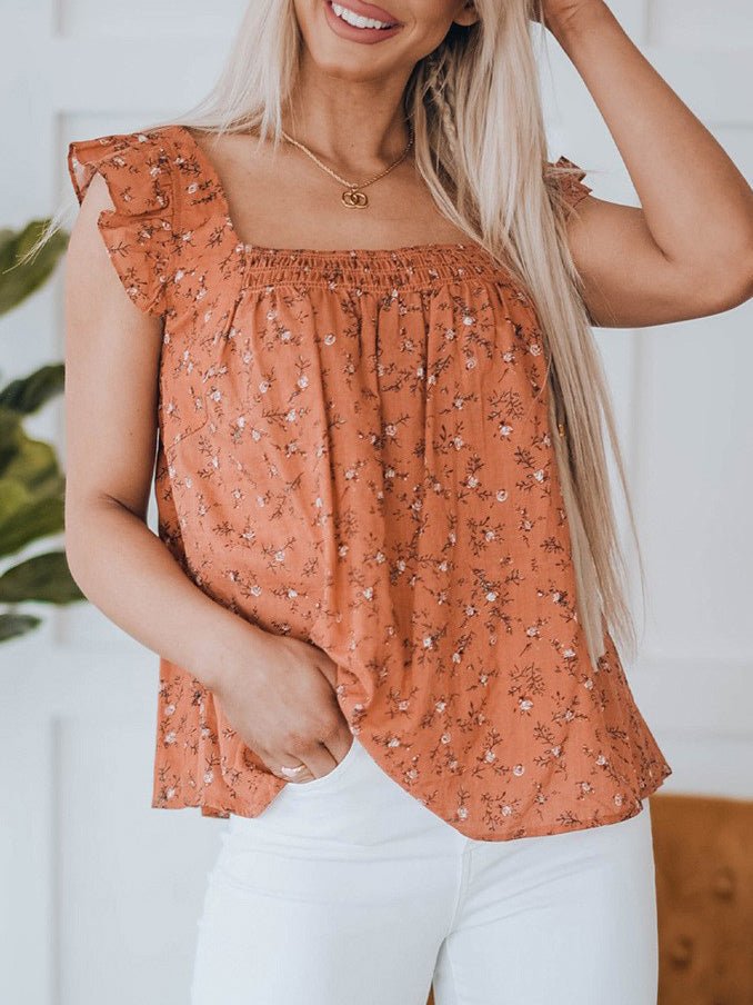 Women's Tank Tops Loose Floral Square Neck Sleeveless Tank Top