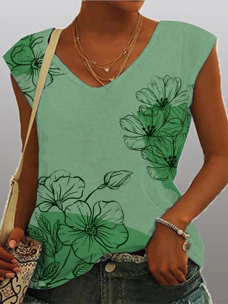 Women's Tank Tops Loose Gradient Flower Print V-Neck Tank Top