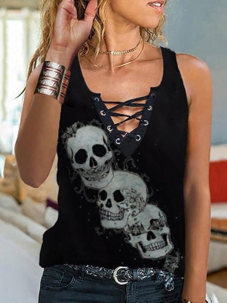 Women's Tank Tops Skull Print V-Neck Sleeveless Tank Top