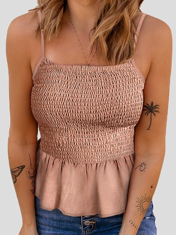 Women's Tank Tops Solid Small Sling Smocked Sleeveless Tank Top