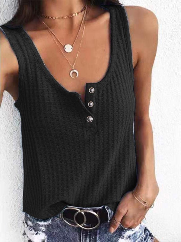 Women's Tank Tops Solid U-Neck Snap Button Sleeveless Tank Top