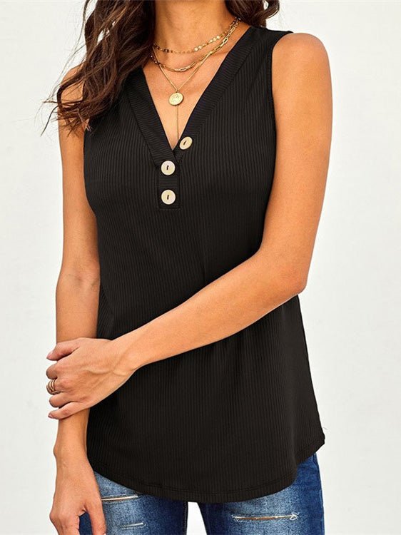 Women's Tank Tops V-Neck Button Casual Tank Top