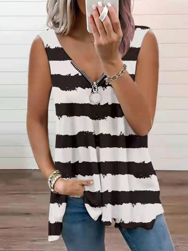 Zip Up Sleeveless Tank Blouse Top